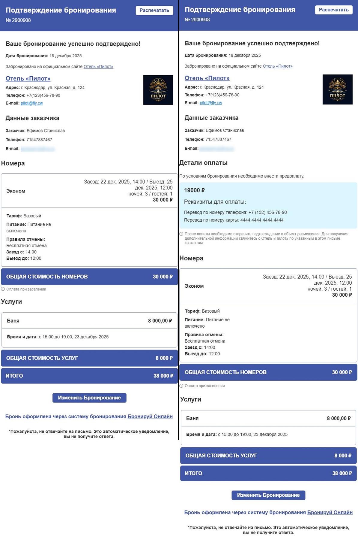 Если бронирование подтверждено, гость получит уведомление с темой «Ваше бронирование подтверждено». Если необходимо внести оплата, в письме будут отображаться данные для внесения.