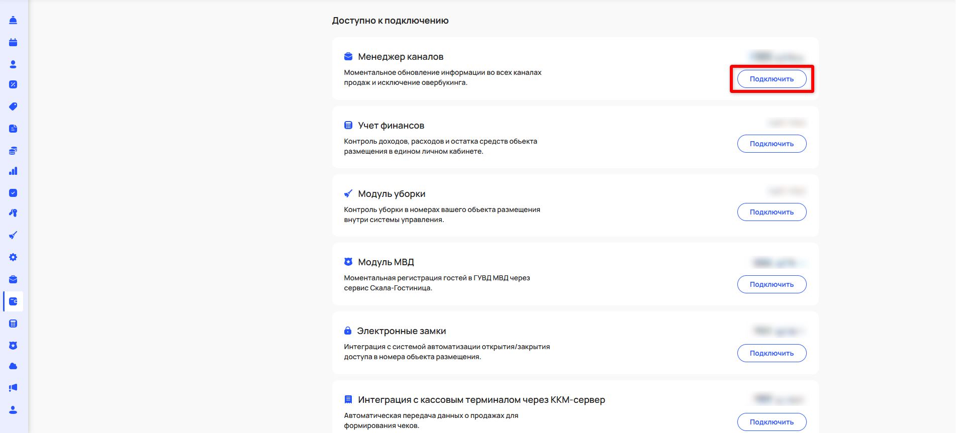 В блоке «Доступно к подключению» представлен перечень дополнительных инструментов, которые еще не активированы. Для подключения нажмите кнопку «Подключить» напротив интересующего вас инструмента.