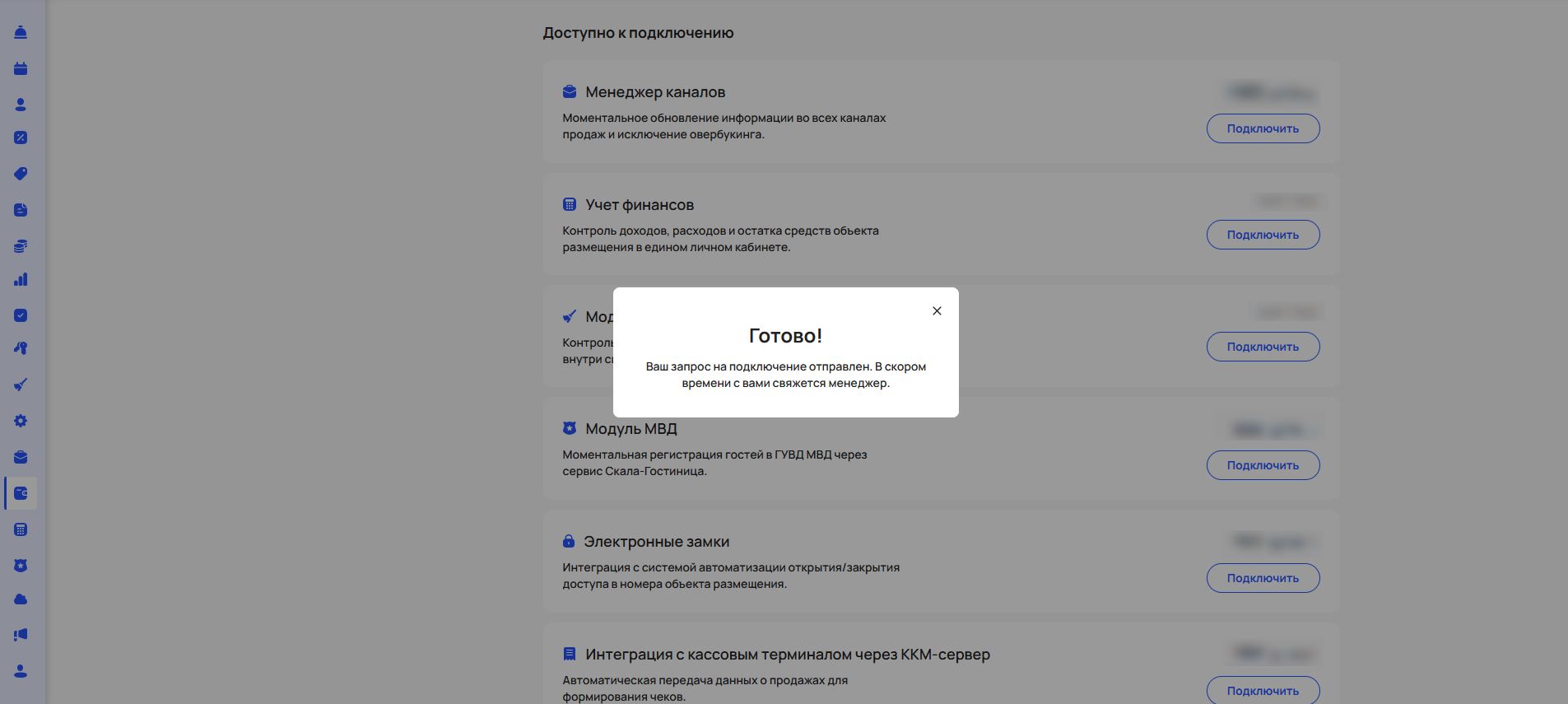 Запрос на подключение будет направлен вашему менеджеру, и он свяжется с вами в ближайшее время.