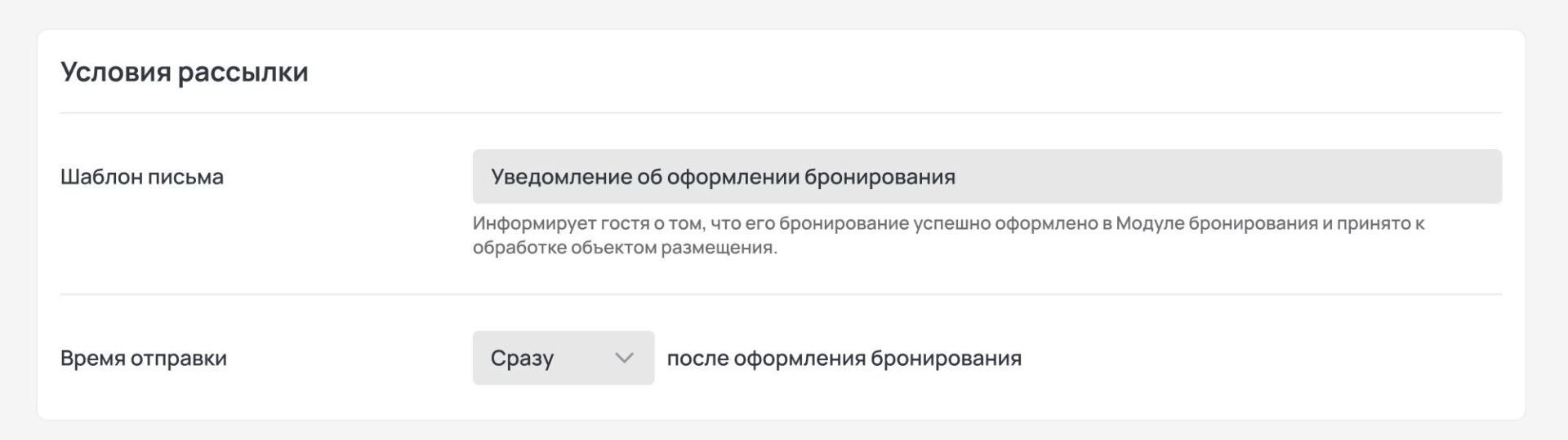Раздел «Рассылки» (открыть в личном кабинете) позволяет настраивать email-уведомления для гостей. С его помощью вы можете быстро выстроить коммуникацию с клиентами — от отправки подтверждений бронирования до напоминаний и других сервисных писем.