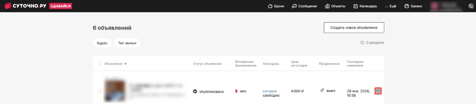 Авторизуйтесь в экстранете «Суточно.ру» (https://extranet.sutochno.ru/), зайдите в личный кабинет и перейдите в раздел «Сдавайся» → «Мои объекты».