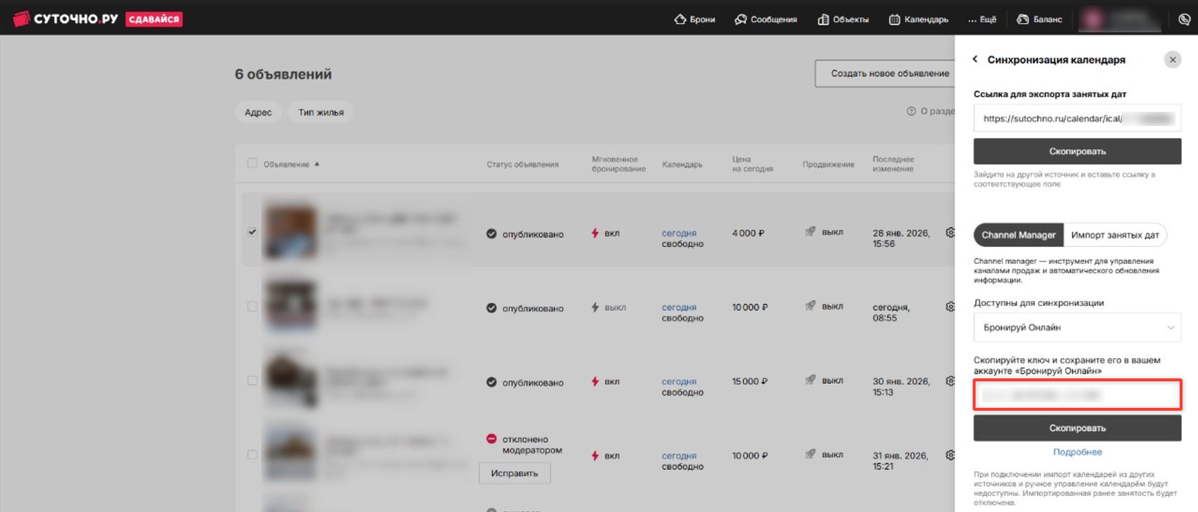 Если ранее объект был подключен к другому менеджеру каналов, обратитесь в поддержку «Суточно.ру» для переключения на нашу систему.