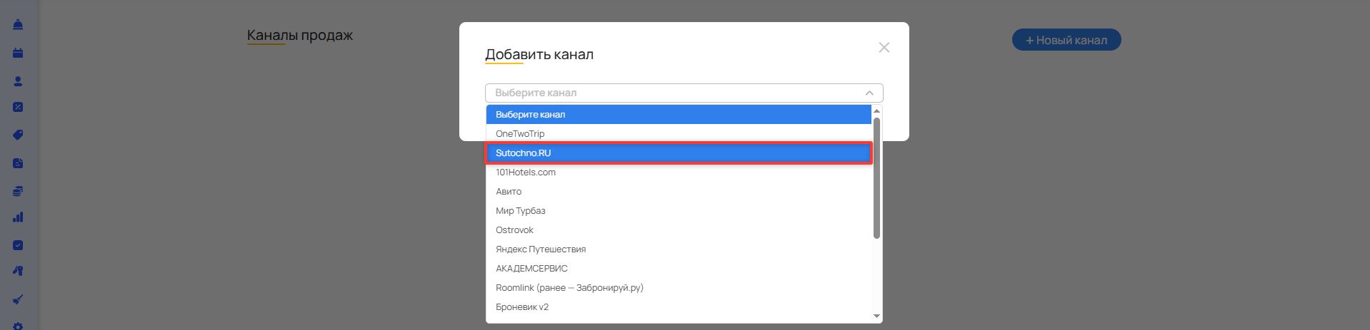В выпадающем списке выберите вариант Sutochno.RU.