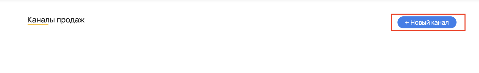 Зайдите в раздела «Менеджер каналов» → «Каналы продаж» (открыть в личном кабинете) и нажмите кнопку «+Новый канал».