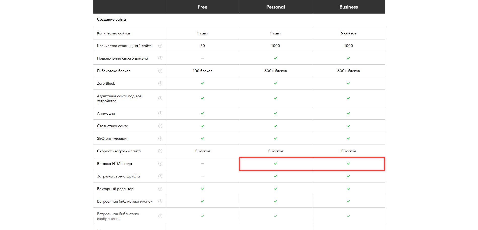 Для установки модуля бронирования в личном кабинете Tilda необходимо подключение тарифа Personal или выше, где доступна возможность вставки HTML-кода.