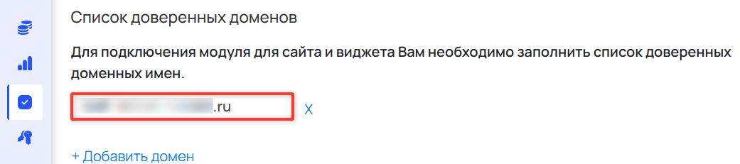 - Добавьте домен вашего сайта в список доверенных в разделе «Услуги» → «Онлайн-модуль» (открыть в личном кабинете).