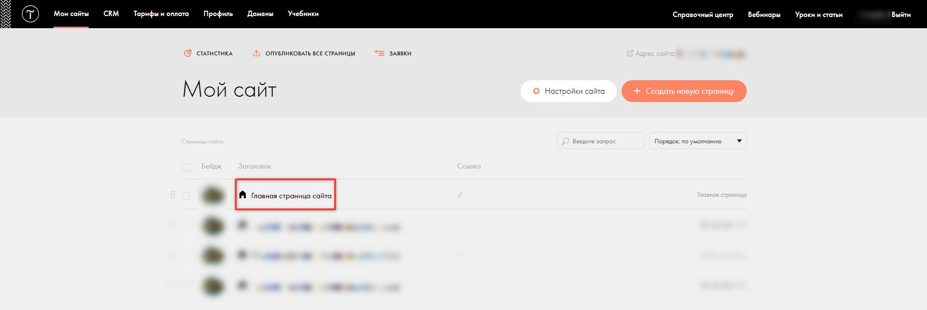Авторизуйтесь в личном кабинете Tilda и перейдите в раздел «Мои сайты».