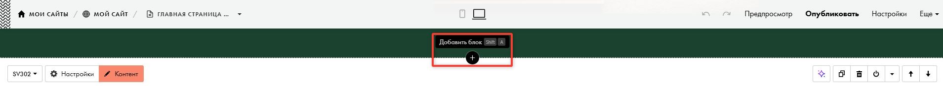 В том месте сайта, в котором должен быть установлен модуль, нажмите кнопку с символом «+»: