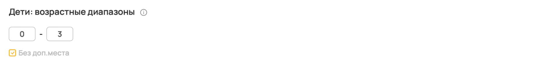 Далее вы можете указать возрастные диапазоны для детей. Если определенная категория детей может проживать у вас без предоставления места – отметьте соответствующую галочку.