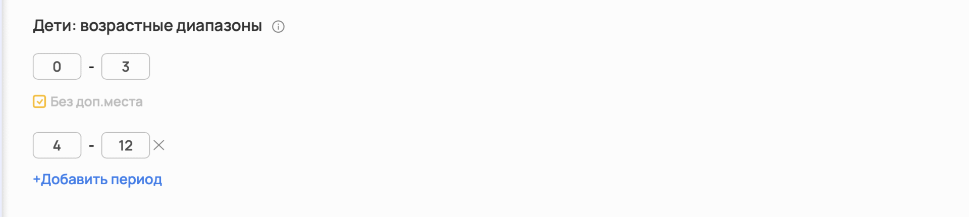 Вы можете добавить еще 3 возрастных диапазона в том случае, если цены на размещение детей отличаются в зависимости от их возраста.