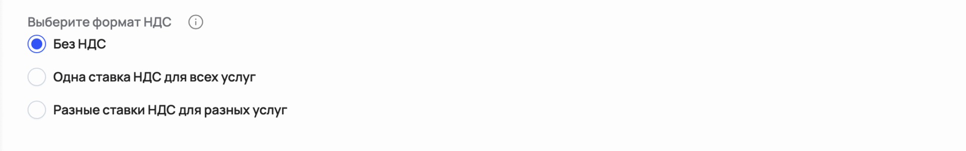 Далее нужно выбрать формат НДС. По кнопке «i» можно посмотреть подробные описания всех форматов.