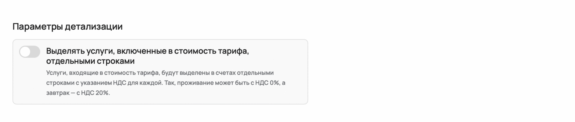 При необходимости налоговые условия можно детализировать для дополнительных услуг в счете. Для этого включите опцию детализации внизу экрана.