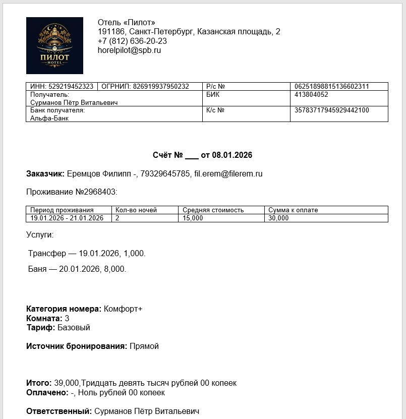 На ваше устройство будет загружен файл формата .docx с данными из карточки бронирования.