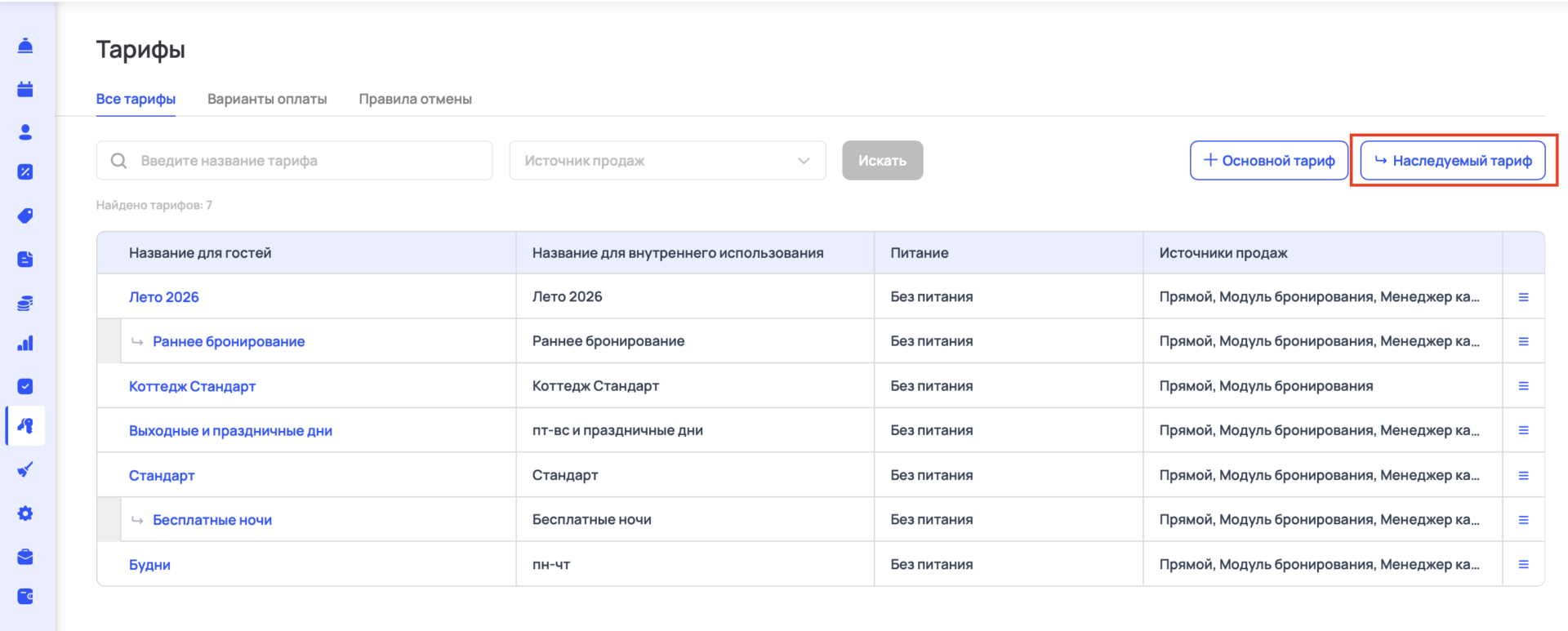 Затем нажмите кнопку «→Наследуемый тариф» в правой верхней части экрана.