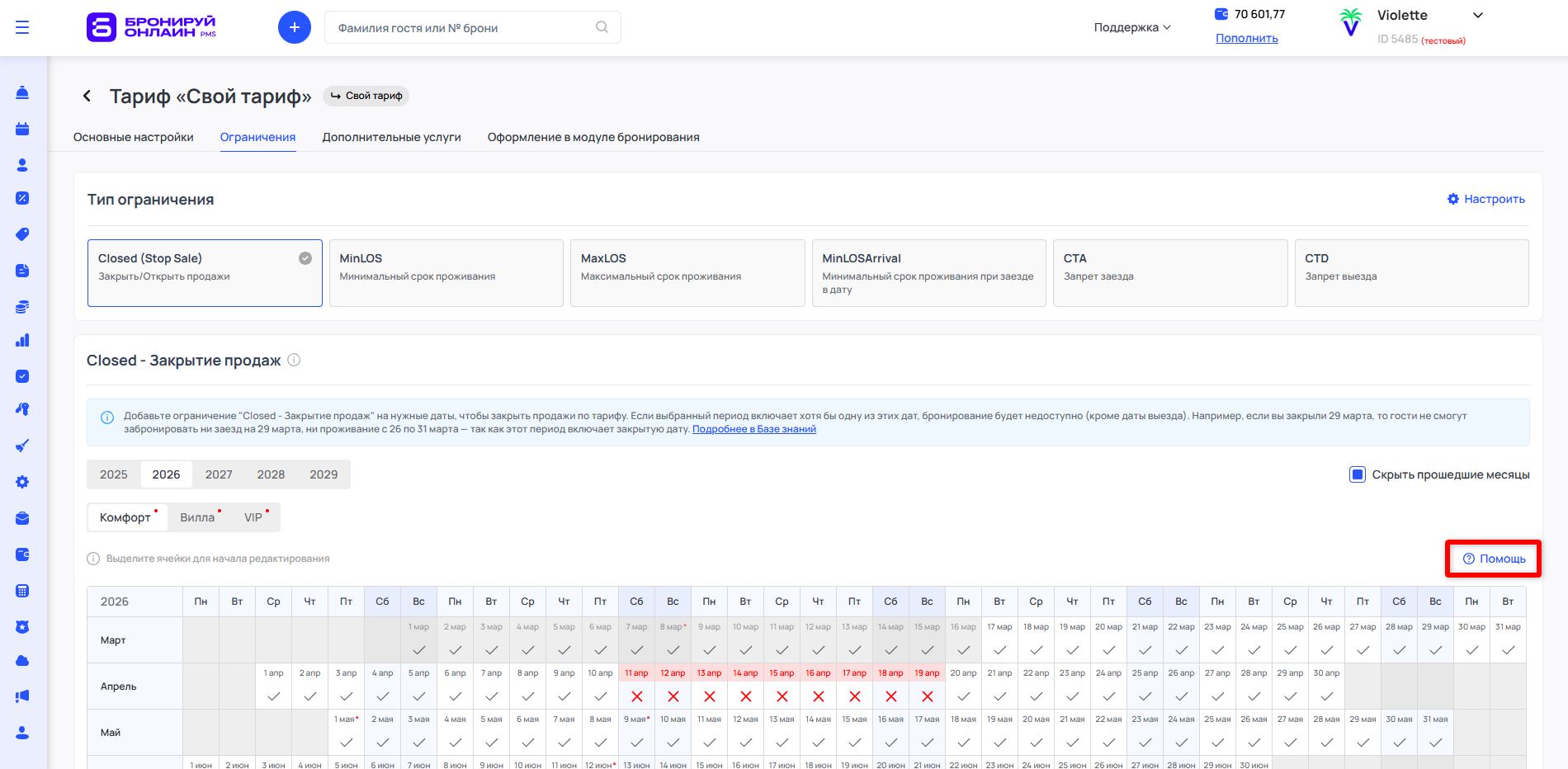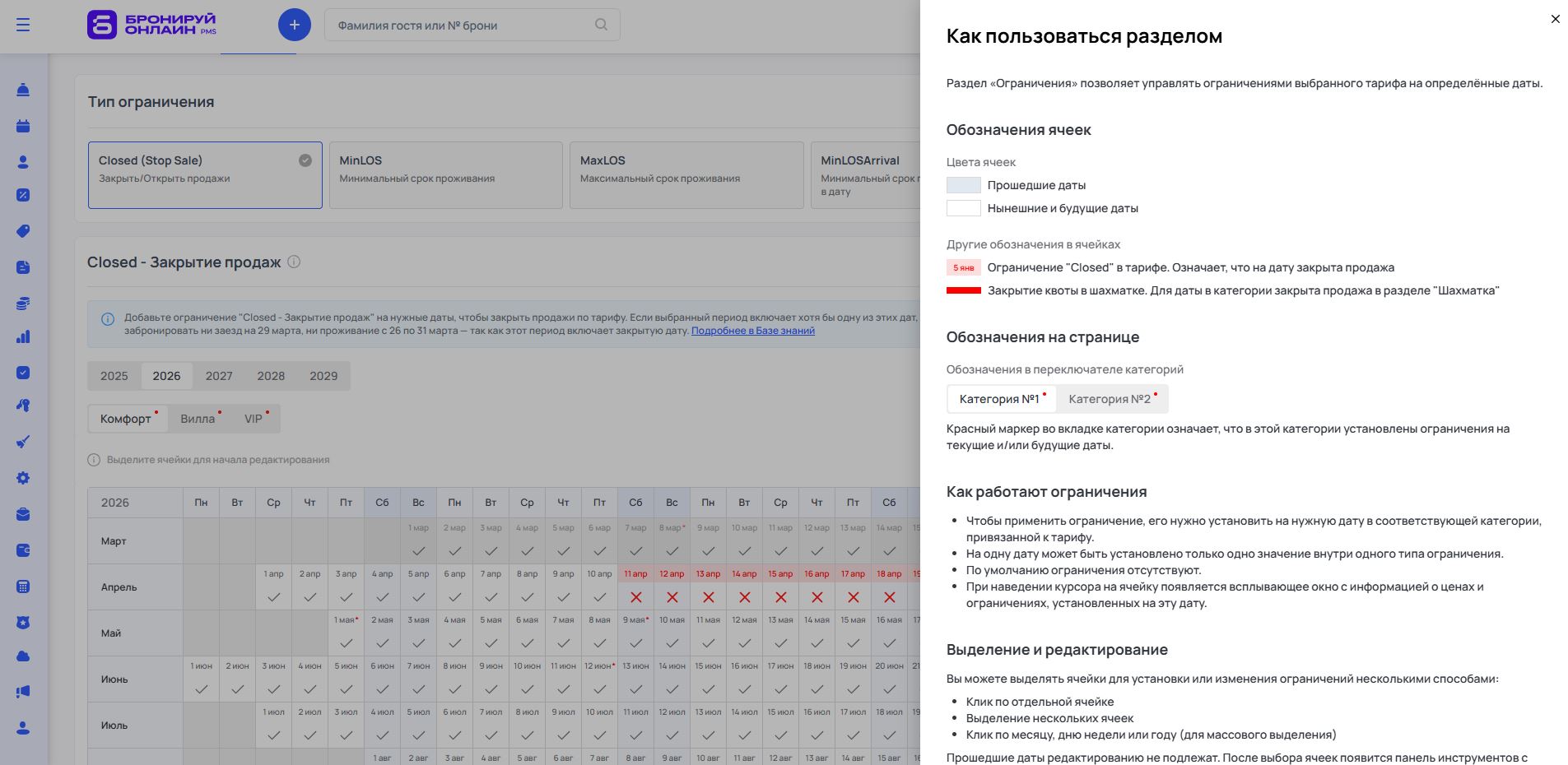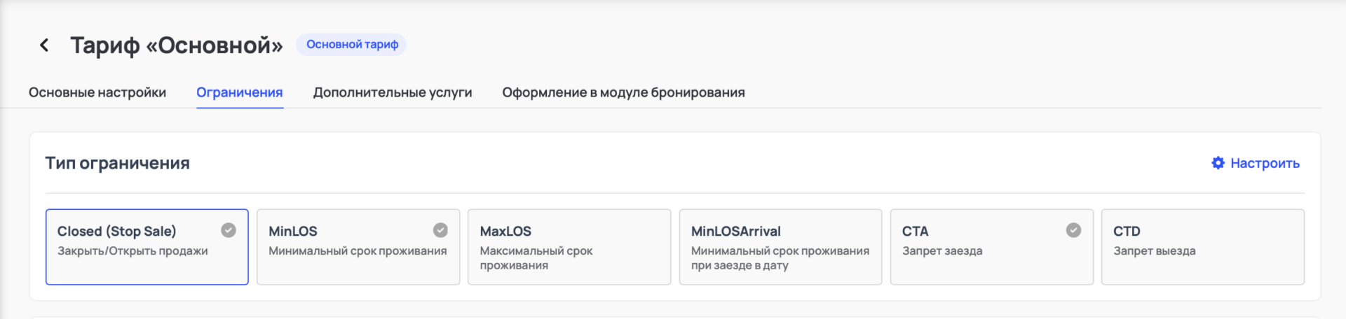 Ограничения в тарифах помогают дополнительно детализировать условия бронирования: например, добавить минимальное или максимальное количество ночей или сделать тариф недоступным в выходные или другие дни недели.