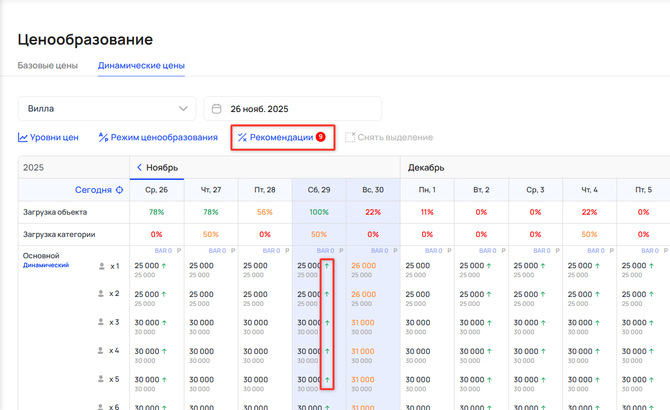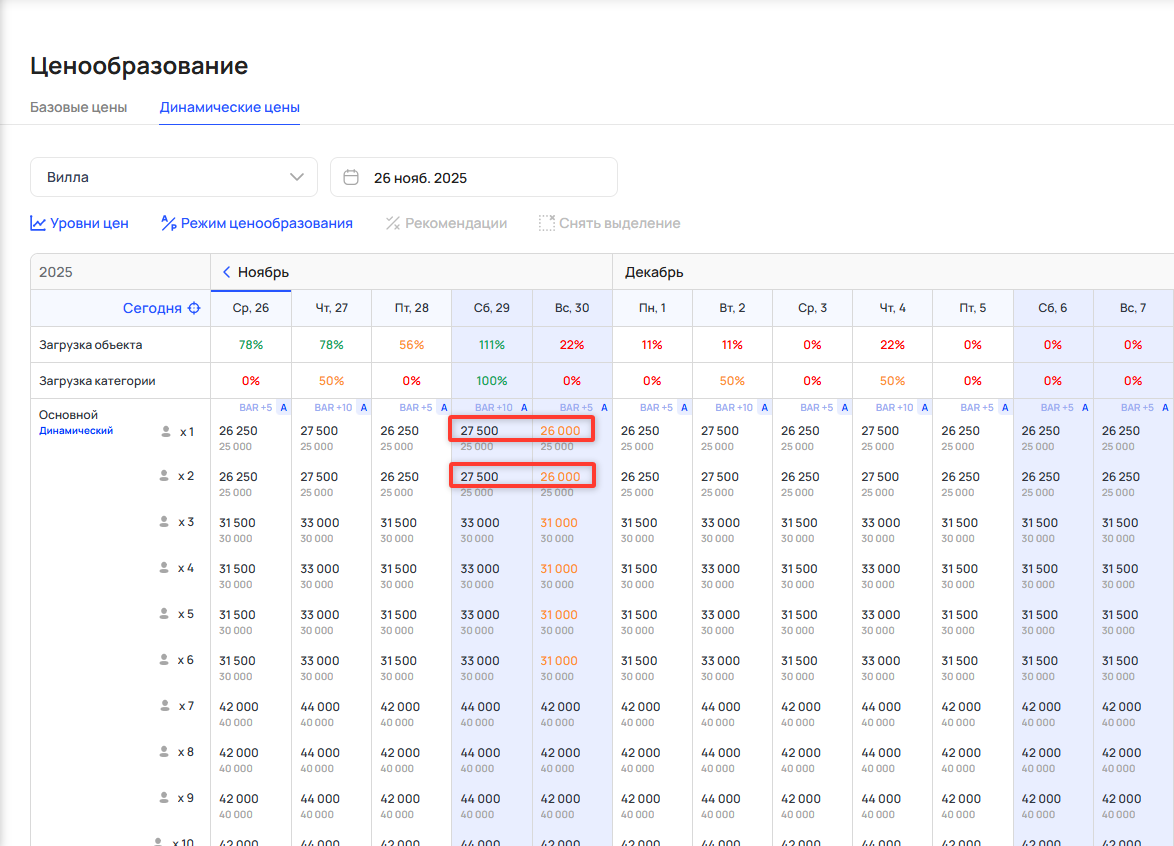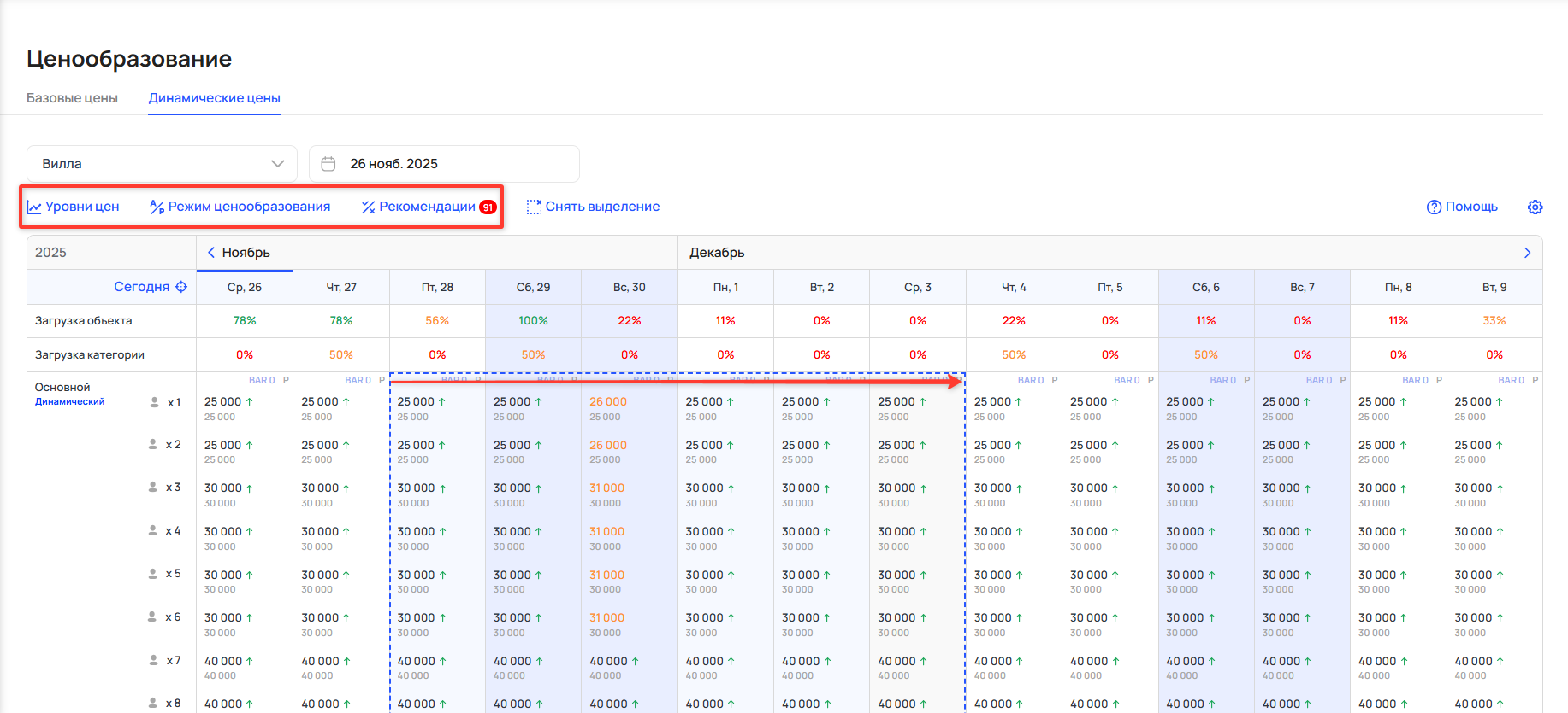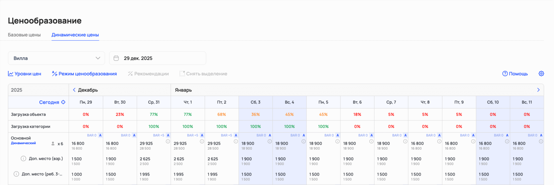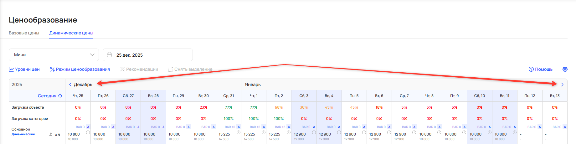 Чтобы перейти к шахматке динамических цен, перейдите в раздел «Номера и тарифы»«Цены» → вкладка «Динамические цены» (открыть в личном кабинете).
