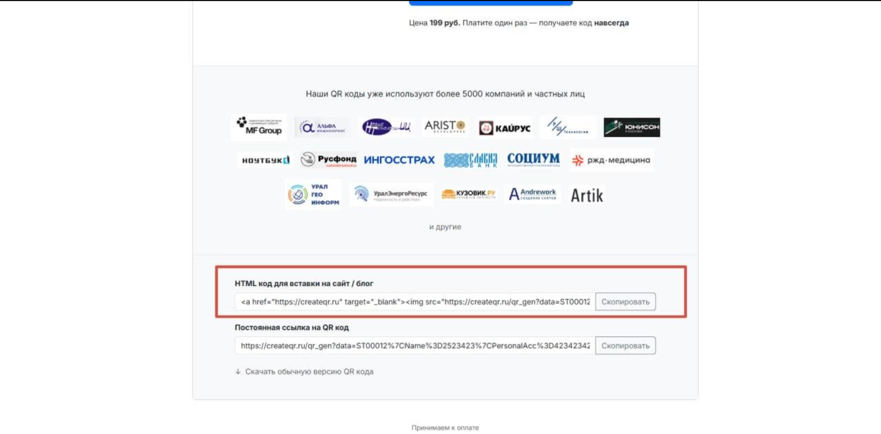 Затем скопируйте сгенерированную строчку кода из поля «HTML код для вставки на сайт / блог».