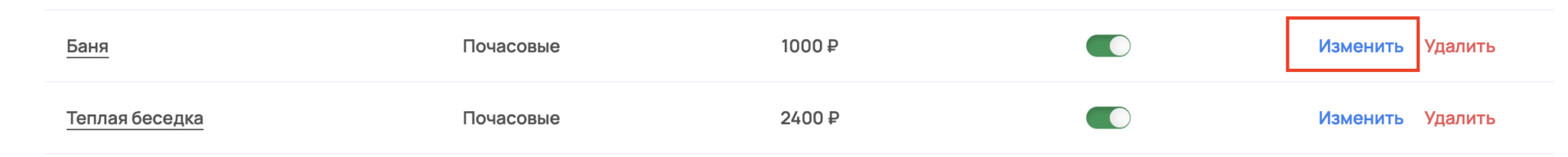 Чтобы добавить к тарифу уже созданную услугу, выберите ее в списке услуг и зайдите в настройки через кнопку «Изменить» в правой части экрана.
