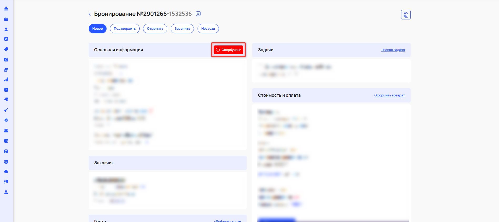Если вы подтвердите поздний выезд, в карточке бронирования отобразится маркер позднего выезда.
