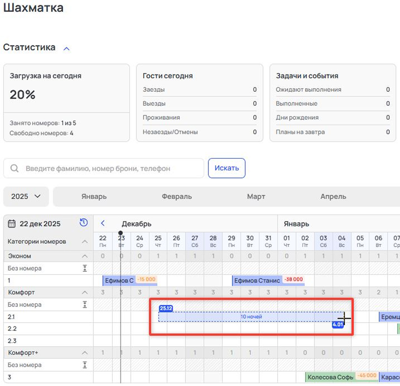 Вы можете управлять доступностью комнат через шахматку: закрывать конкретные номера для продажи на отдельный период времени и открывать их.
