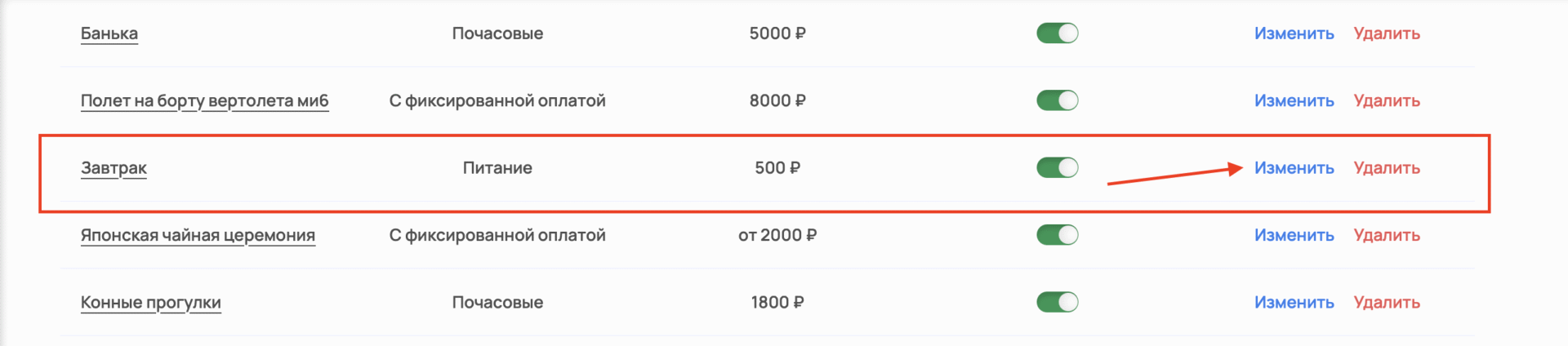 Если вы хотите включить созданную услугу питания в тариф, смотрите в раздел «Включение услуги питания в тариф».