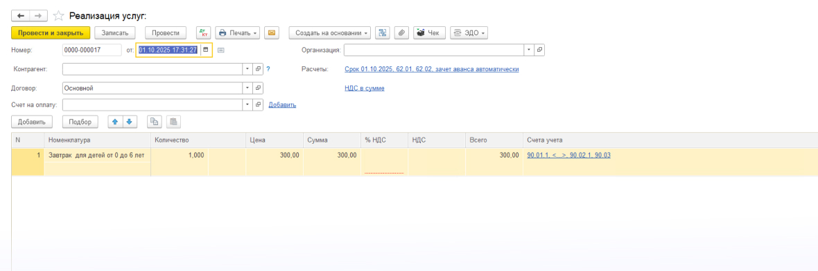 Начисления от продажи услуг, по прочим услугам, не связанным с проживанием