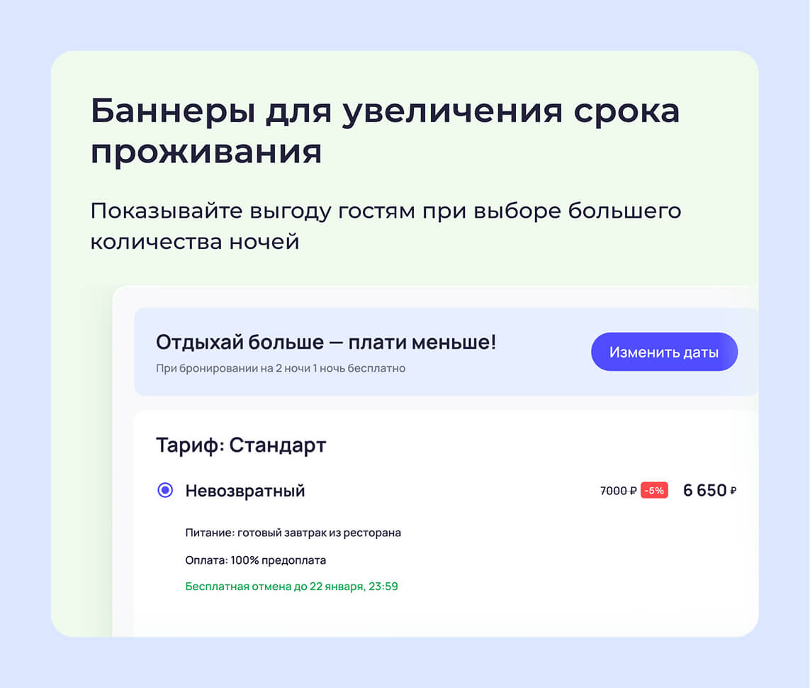 Задача модуля — увеличить долю прямых продаж и повысить доход с каждого бронирования с помощью инструментов допродажи.