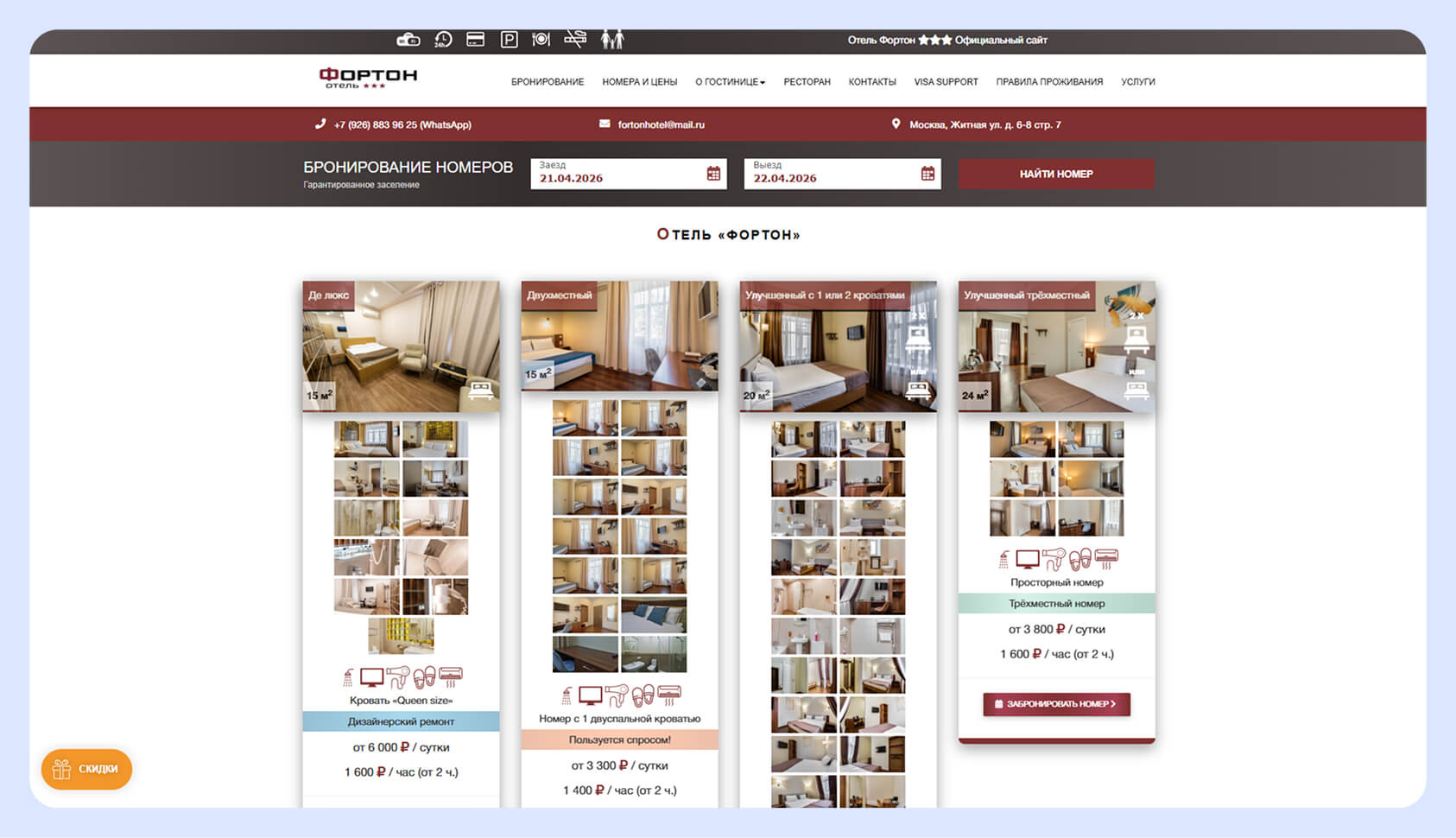 Дополнительные услуги как часть предложения. Экскурсии, завтраки в номер, спа, поздний выезд — все это должно быть встроено в сценарий бронирования, а не существовать отдельно. Так формируется дополнительная выручка и растет средний чек.