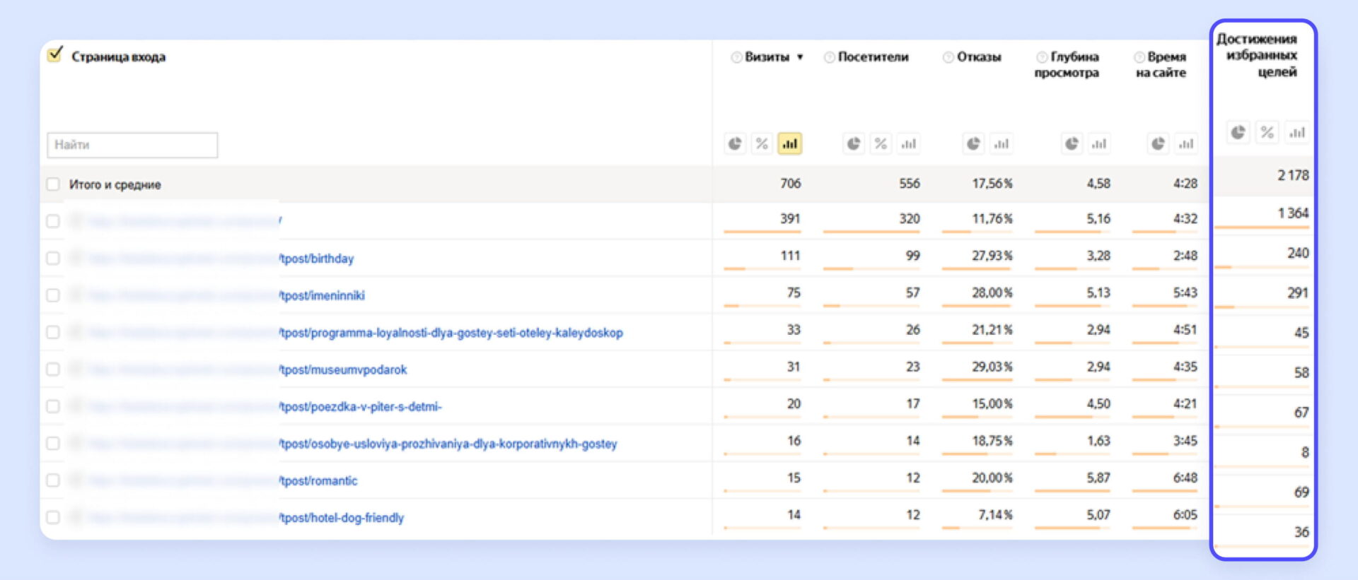 Задача аналитики здесь — отследить путь пользователя: с какой статьи он перешел на страницу акции и дошел ли до бронирования. Такие переходы видно в отчетах по путям пользователей и целям в системах аналитики.