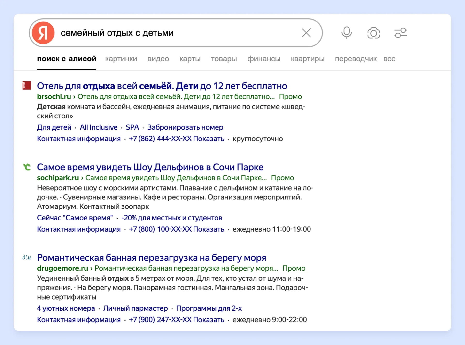 Гости ищут акции под конкретный сценарий отдыха. В поиске это выражается в четких формулировках, которые сразу показывают, для кого и для какой ситуации нужно предложение. Например, пользователи вводят запросы вроде: