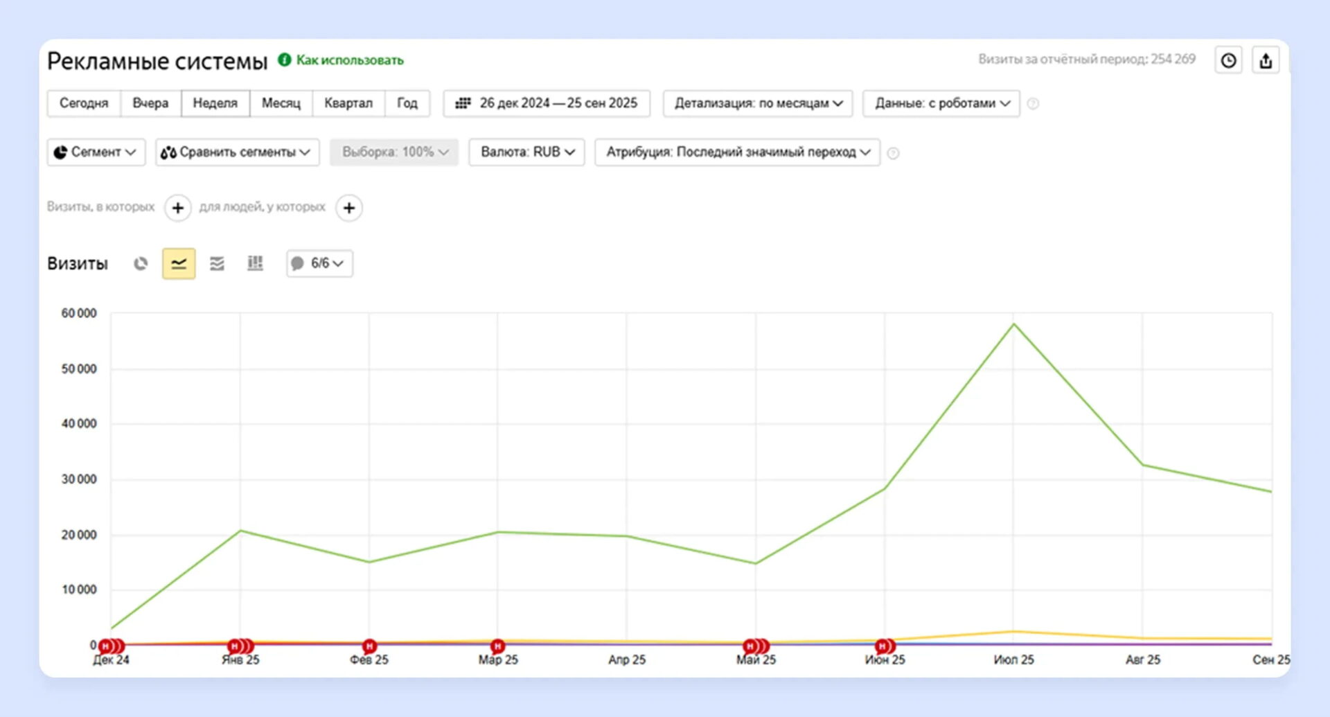Показатели по рекламным системам в отчете из сервиса «Яндекс Метрика»