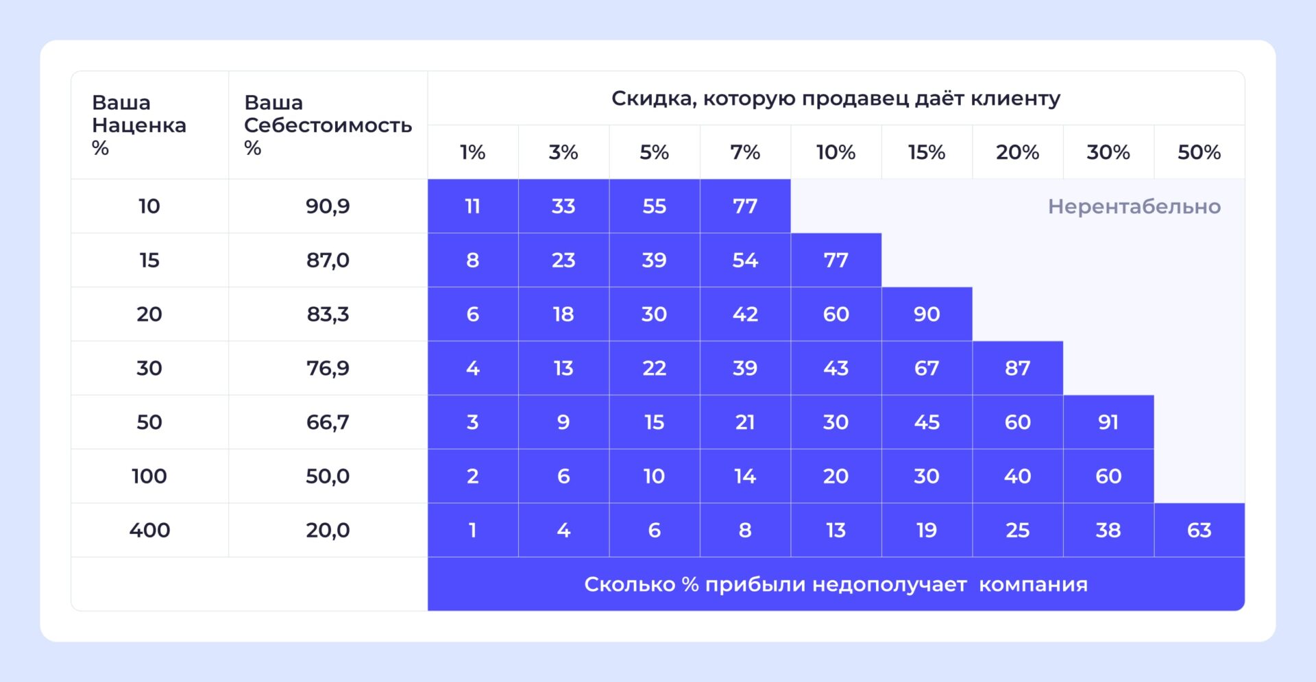 Если наценка ниже, эффект становится еще сильнее. При наценке около 20% себестоимость номера будет примерно 4 170 рублей — прибыль составит 830 рублей. После скидки 10% цена снизится до 4 500 рублей, и прибыль упадет до 330 рублей — почти на 60%.В ряде случаев скидка — это не бонус, а упущение прибыли. Поэтому оптимально сочетать небольшую скидку с нематериальными привилегиями — апгрейдом номера, ранним заездом, бесплатным завтраком.