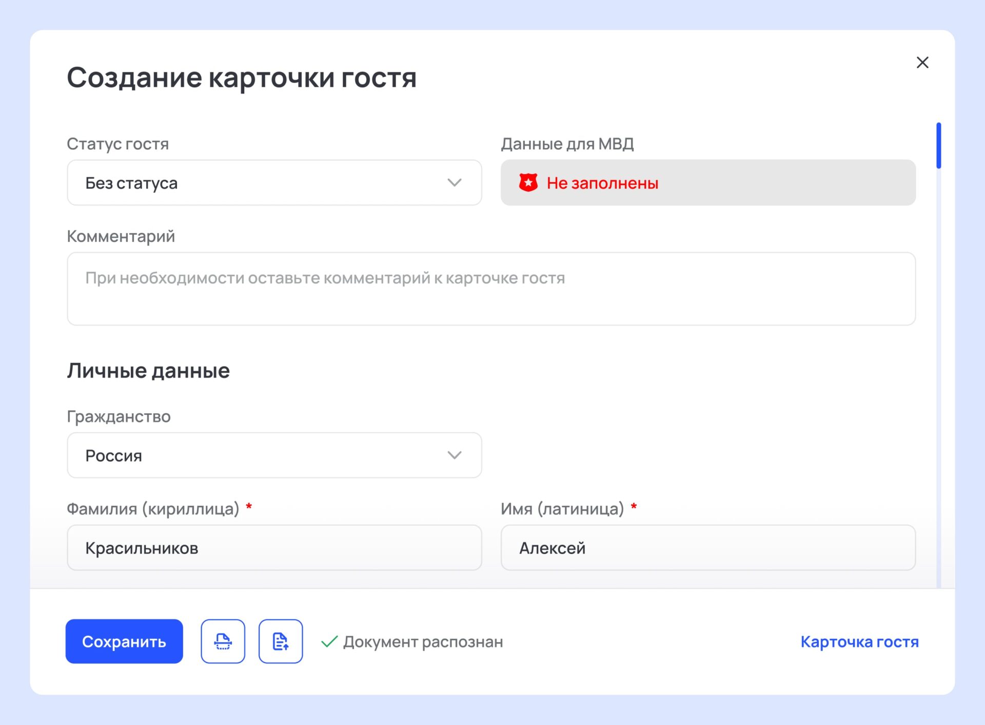 Передача данных гостя через модуль МВД в системе «Бронируй Онлайн»