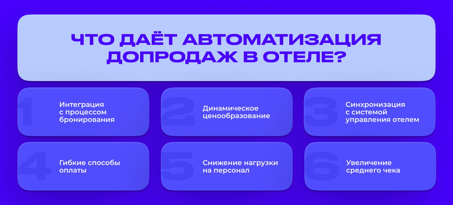 Отели, которые внедряют такие решения, получают не только рост продаж и увеличение среднего чека, но и стратегическое преимущество: оптимизацию операционной нагрузки, прогнозируемость выручки и повышение лояльности гостей.