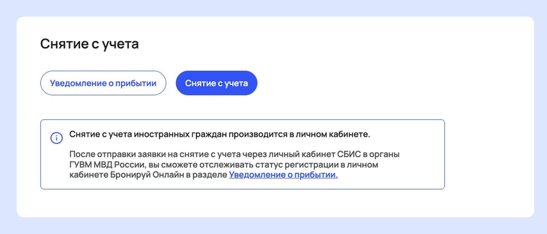 • Срок снятия с учета: до 12:00 рабочего дня после выезда иностранного гостя.