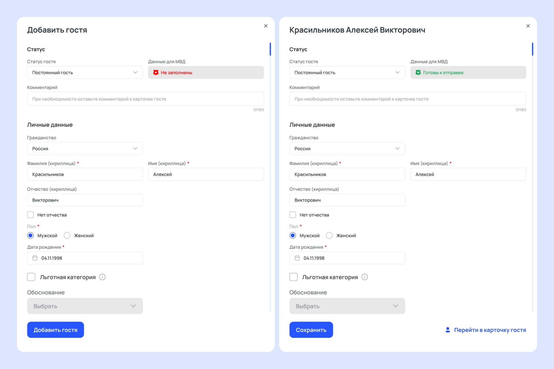 1. Минимум ошибок при заполнении. Администратору не нужно вручную заполнять данные гостя из документов, он может их отсканировать. Это исключает вероятность человеческого фактора — ошибки, пропуски и т. п. Уведомление в МВД формируется автоматически.