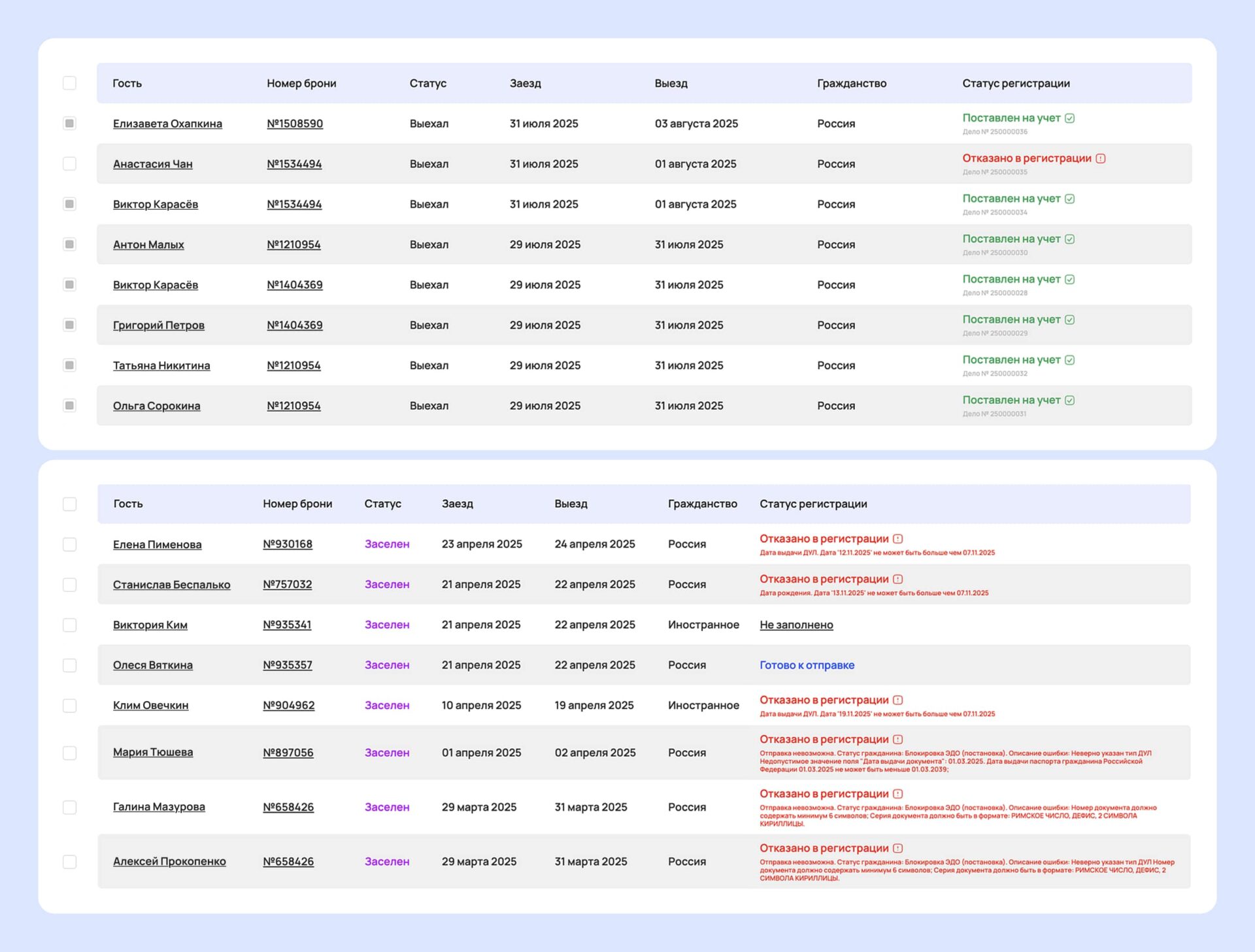 Даже очень внимательные сотрудники могут допустить неточности: неверно указать серию и номер паспорта, дату въезда, адрес или пол гостя. Ошибка в одной цифре может привести к отказу в принятии уведомления и нарушению срока регистрации. Особенно часто проблемы возникают при работе с иностранцами — разночтения в транслитерации фамилий, разные форматы паспортов, сложности с визами.